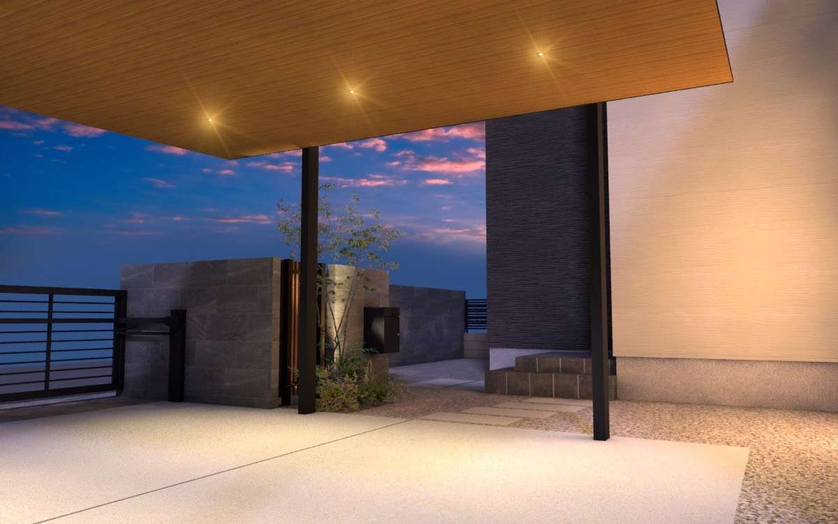 カーポートは面積が大きい分、照明があるかないかで外構全体の印象が大きく変わります。単なる実用スペースではなく、外構デザインの一部として計画することで、夜の景観がぐっと引き締まります。