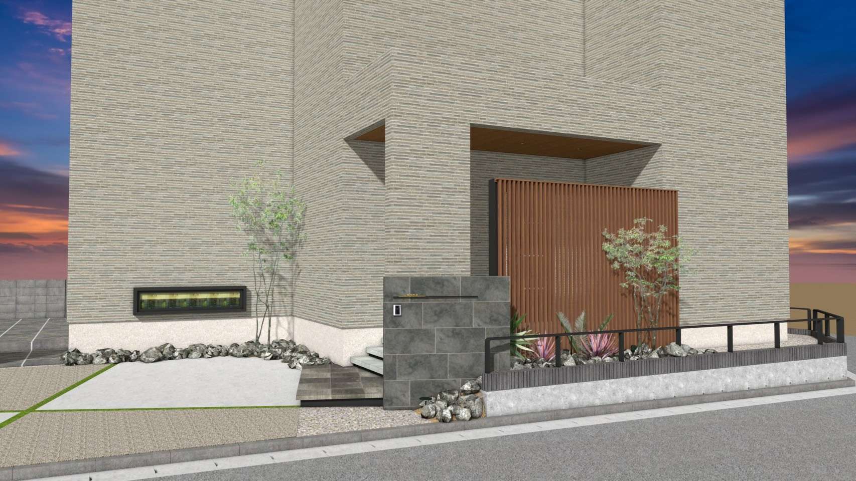 今回の事例でも、建物の色や木目に合わせて外構の素材を選んでいます。