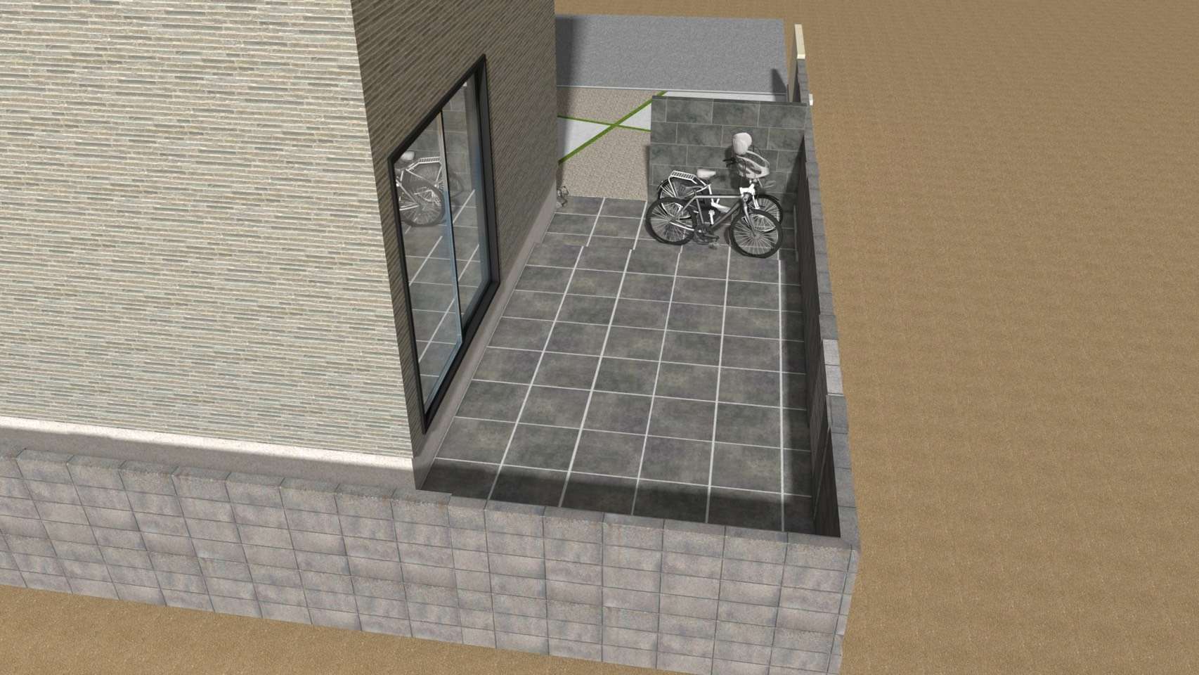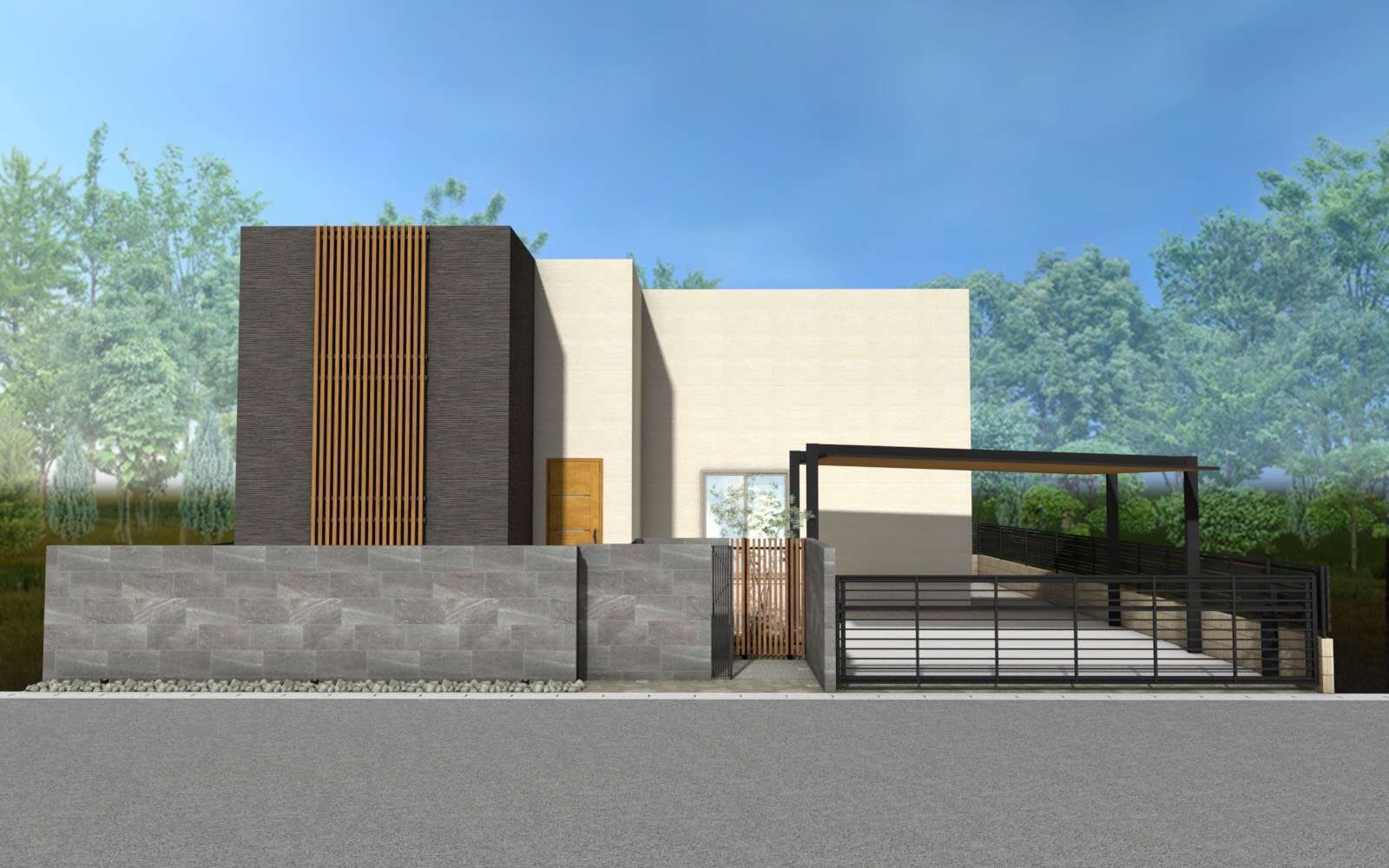 機能的ではありますが、パースで作ってみると道路からの視線が気になる、外観にもう少し個性がほしい、子供の飛び出しが怖いといったお声もありました。