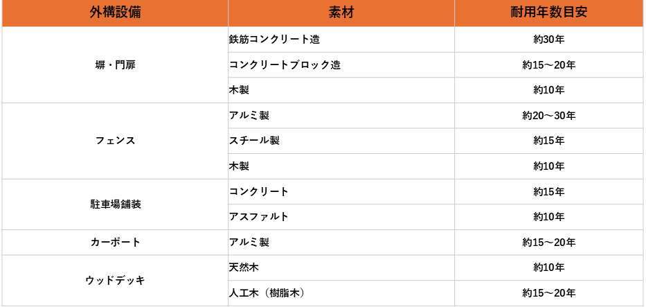 外構の素材別・耐用年数の目安